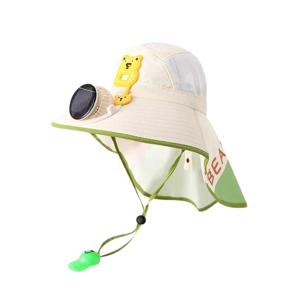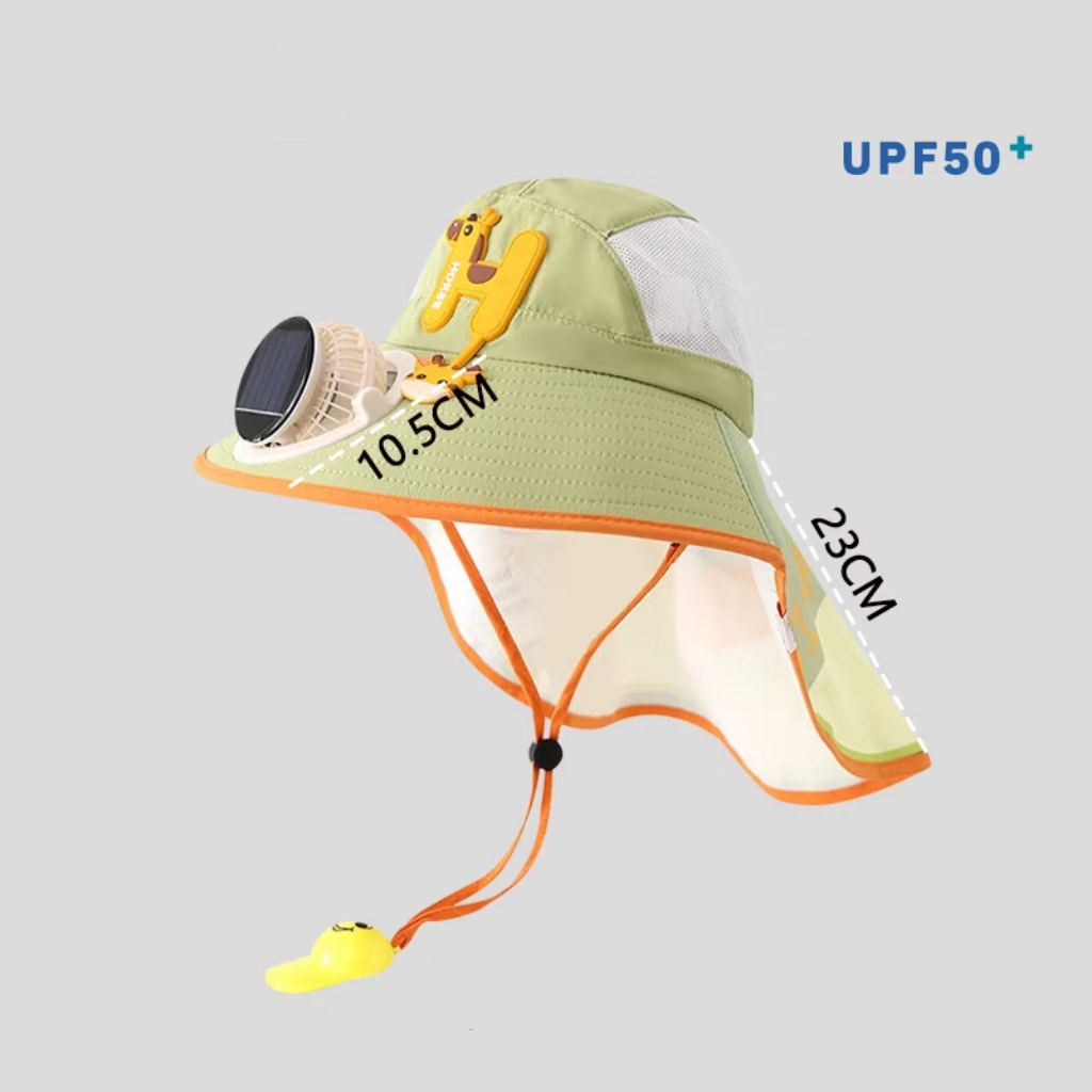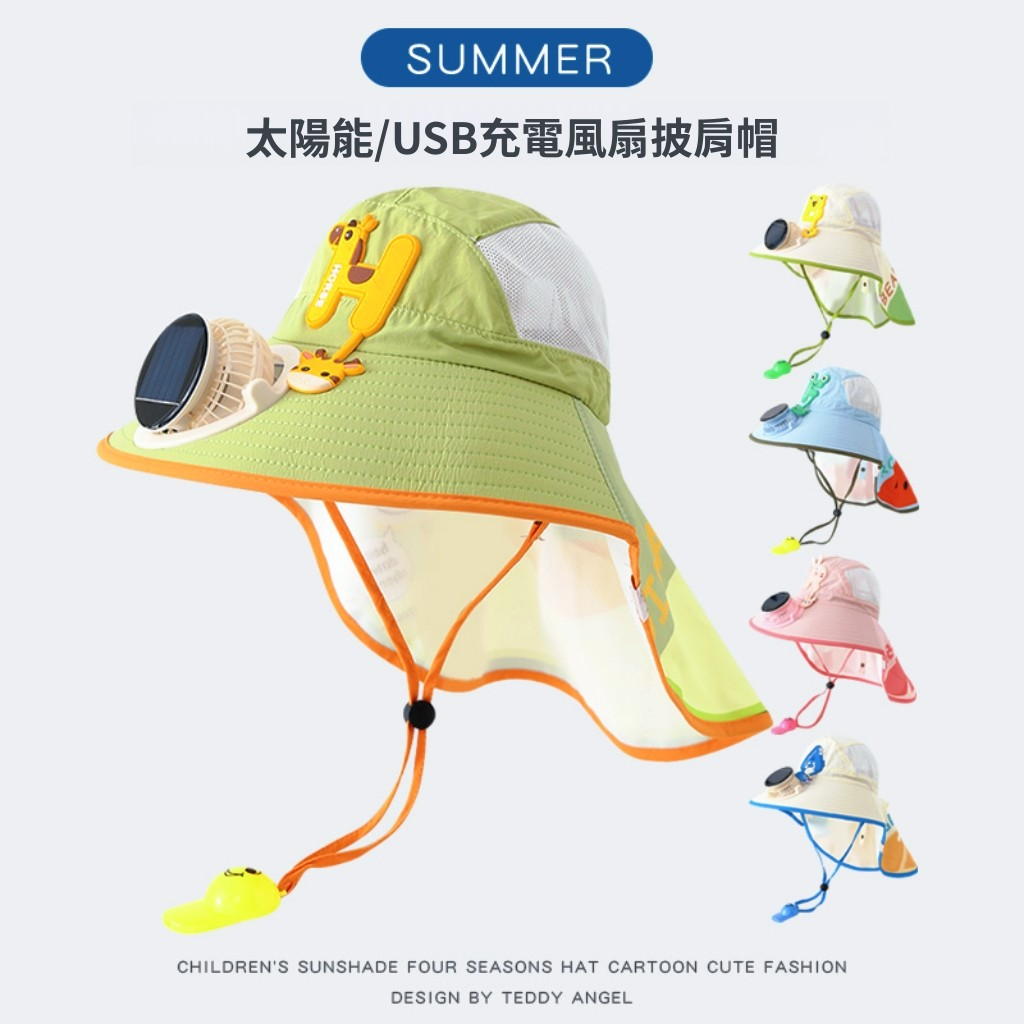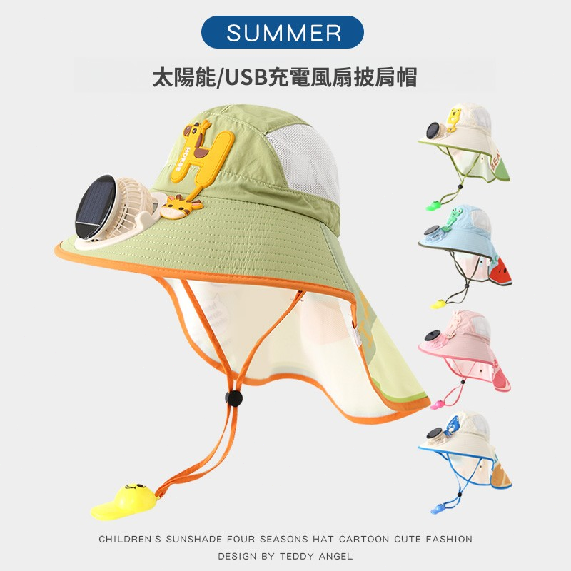 兒童太陽能風扇防曬帽 大帽簷披肩一體式 網眼透氣寶寶戶外遮陽帽